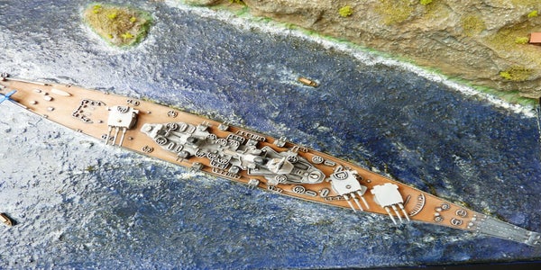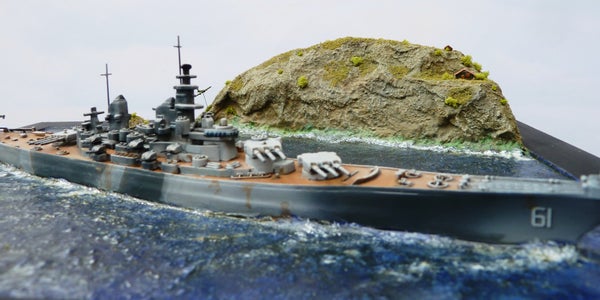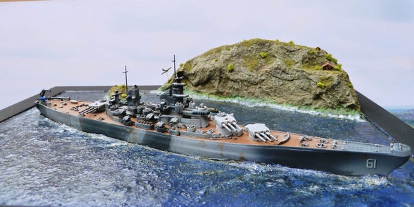 This was a fun project. I used the 1:1200 Revell kit of the USS Iowa and build it out of the box. It is an ancient kit and I think the mold is around 50 years old.
