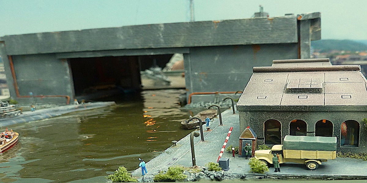 The new diorama depicts a departing Type VII submarine of the latest generation, equipped with a snorkel. Thanks to the snorkel, the submarine no longer had to surface completely to recharge its batteries. This also allowed fresh air to be drawn in and exhaust gases to be expelled, all without exposing the submarine to enemy eyes. In this way, the submarine became a true underwater boat, fully equipped for prolonged underwater operations.